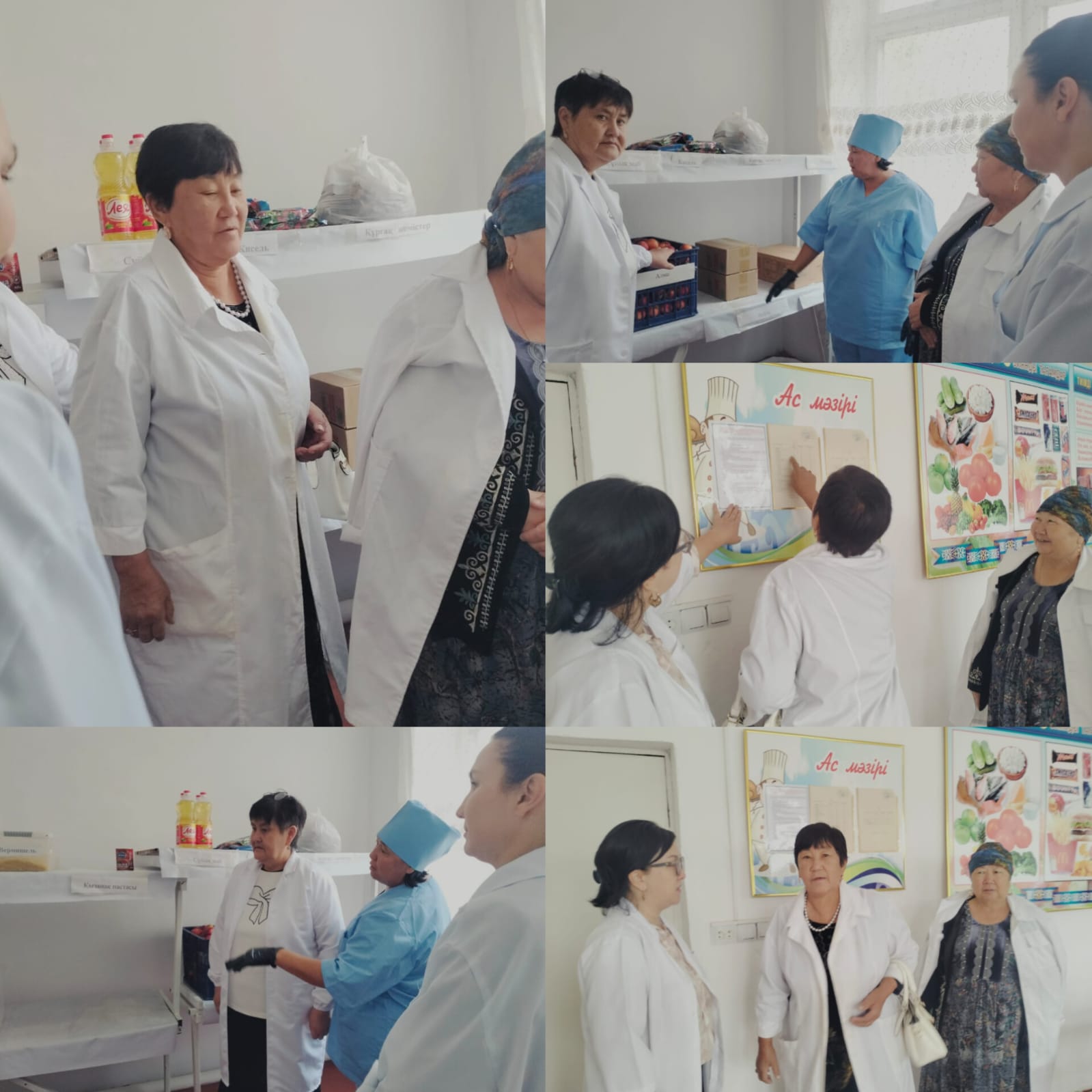 Мектепте білім алушылардың улану жағдайларының алдын алу мақсатында, тамақтану сапасын қадағалау жөніндегі бракераж комиссияларының жұмысы күшейтіліп, тыйым салынған өнімдердің сатылуына жол бермеуіне, санитарлық талаптардың сақталуын қадағаланып отырғанын әлеуметтік педагог С.Асықбаева, мектеп медбикесі А.Рахымбаева оқушыларға дұрыс тамақтану туралы түсіндірме жұмыстарын жүргізді. Бір мезгіл тегін ыстық тамақпен қамтылып отқан білім алушыларға, әлеуметттік педагог білім алушылардың сапалы тамақтануын асхананың тазалығын үнемі бақылау жұмыстарын жүргізіп отыр.
