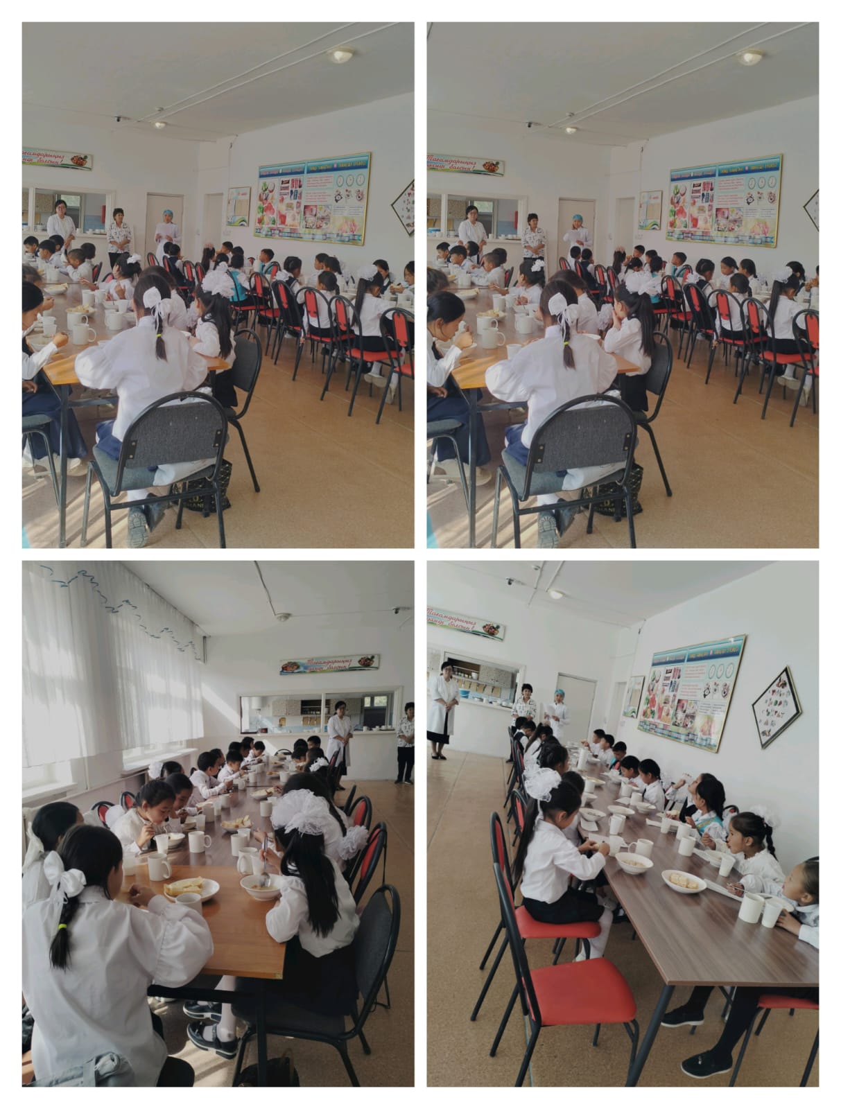 Тегін тамақтануды қамтамасыз ету үшін әлеуметтік педагог 5 санаттағы мектеп оқушыларына жеке құжаттар пакетін қалыптастырды. 2025-2026 оқу жылына 44 оқушы тегін тамақтануға өтініш берілді. Мониторинг келесі бағыттар бойынша жүзеге асырылады: Бракераж және мониторинг комиссиясының жұмысы бойынша есепке алу құжаттамалары жүргізіледі. Бракераж және мониторинг комиссиясының бұйрығы, бракераж комиссиясының құрамы құрылды, жұмыс жоспары, актілердің, хаттамалардың болуы бекітілді; Бекітілген мәзір бар (күнделікті және перспективалық мәзірдің болуы) Шикі және дайын өнімдердің бракераж журналы бар; Есептерді интернет-ресурста орналастыру; Жұмыс шеңберінде визуалды тексеру жүзеге асырылады: Мектеп асханасындағы мектеп әкімшілігінің кезекшілік кестесі. Оқушылардың тамақтану режимі (кесте, тамақтану уақытының ұзақтығы асхананың жұмыс режимі); Ауыз су режимін сақтау, экологиялық таза су ішуді қамтамасыз ету.